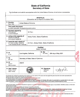 海牙认证样本